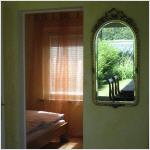 Im Hintergrund des Spiegesl ist der Garten und der Wutzsee zu erkennen.
